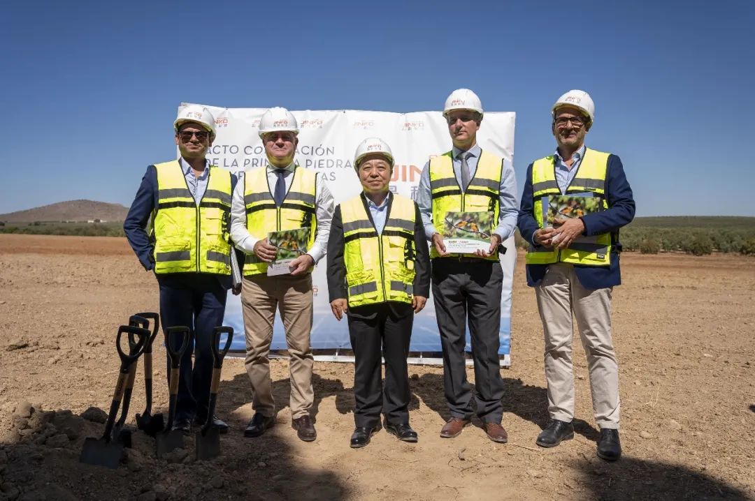 在奠基仪式上,叶建春省长、安达卢西亚大区工业代表卡洛斯·加西亚·吉梅内斯、710公海寰宇科技副总裁睿维等持握铁锹为项目奠基石培土。并按照当地传统,将装有当天报纸和硬币的盒子埋入项目工程现场。
